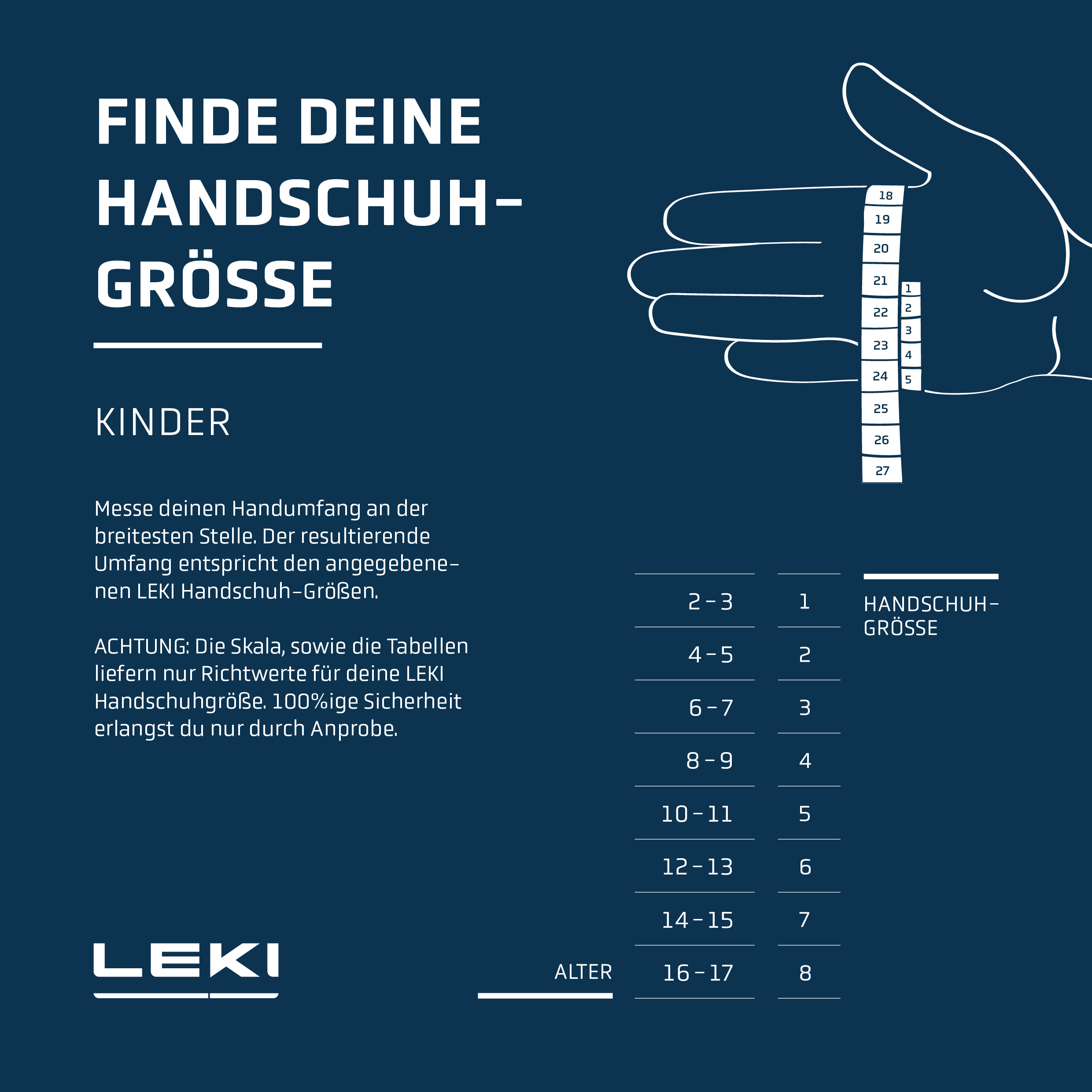 Leki Grössentabelle Handschuhe Junioren
