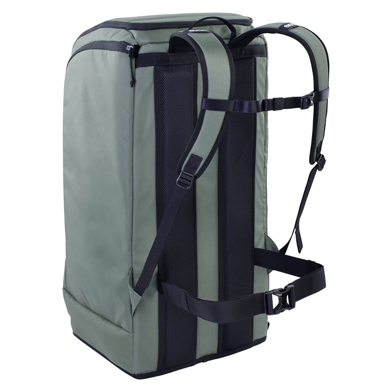 Zwei grosse Hauptfächer für Stiefel, Helm oder Bekleidung und ein seitliches Reissverschlussfach mit Fixierungen für kleines Equipment. Gut gepolsterte, ergonomische Schultergurte für komfortablen Sitz. Verstärkte Bodenkonstruktion für sicheren Stand.