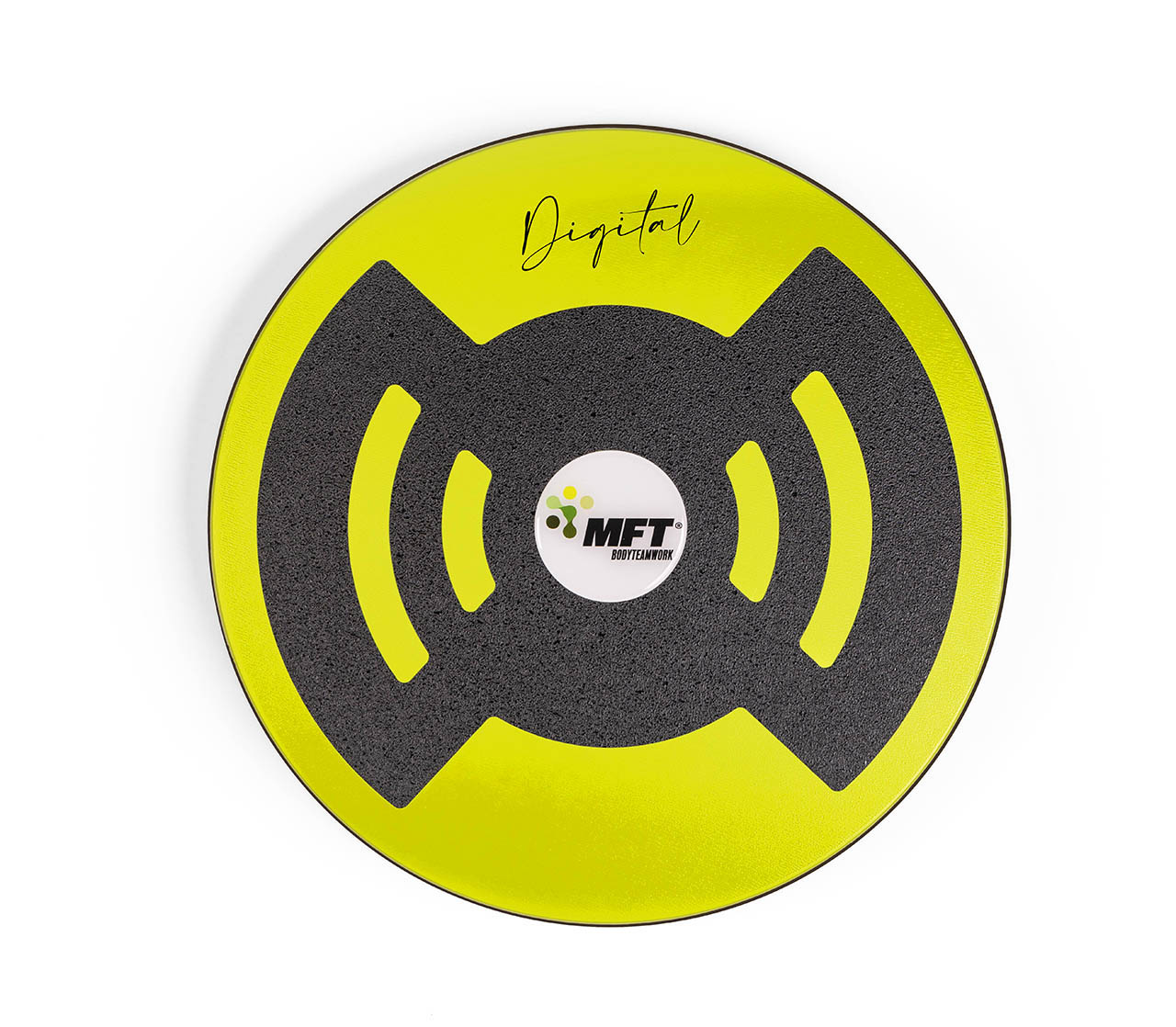 Lieferumfang: 1 MFT Challenge Disc Digital (ø = 44 cm, H = 7,5 cm, 3,6 kg) inkl. MFT Bluetooth Bewegungssensor, Antirutschbelag, Gebrauchsanleitung, App/Software Download